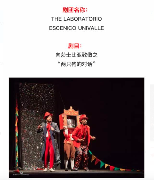 Esta es la primera edición del “Tang Xianzu International Theater Festival” dedicado a honrar la memoria de Tang Xianzu, el más importante dramaturgo chino de la Dinastía Ming (1368-1644). El Festival transcurre entre el 24 de septiembre y el 31 de octubre y en esta edición programa espectáculos dedicados a Shakespeare, Cervantes y Tang Xianzu, representados por compañías provenientes de Inglaterra, España, Egipto, Brasil, Italia, Rumania, Albania, Japón, China y Colombia. Coloquio de los perrosse presentará en una única función, el viernes 6 de octubre, durante la celebración de la Fiesta Nacional China. Esta es la segunda ocasión en que el Laboratorio Escénico Univalle participa en festivales teatrales del país asiático.