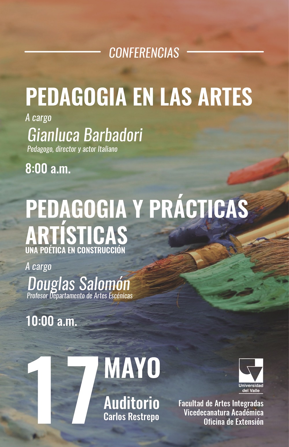 La Facultad de Artes Integradas invita el próximo jueves 17 de mayo a un ciclo de conferencias cuyo eje central son las pedagogías en las Artes, que se realizará en el Auditorio Carlos Restrepo, Edificio 316, a partir de las 8:00 a.m.