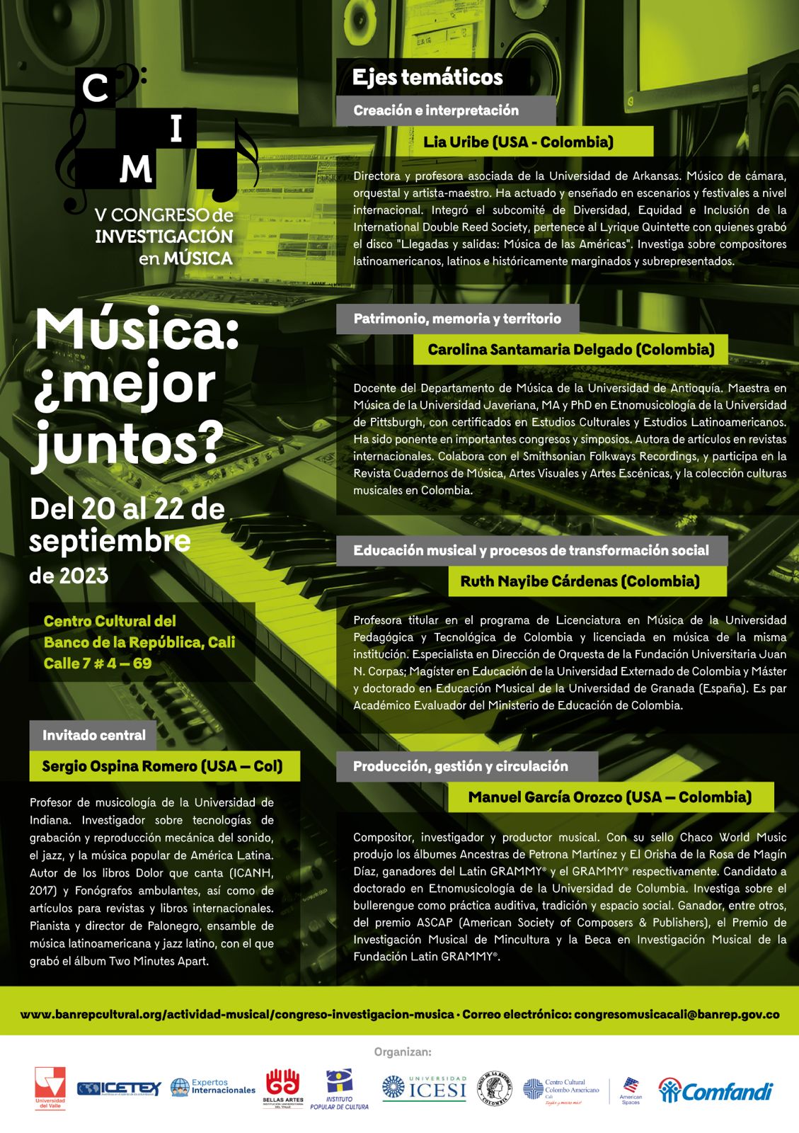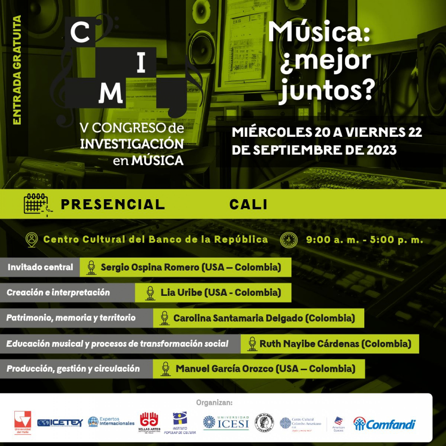 Este congreso tendrá lugar a partir del próximo miércoles 20 de septiembre hasta el viernes 22 y será realizado en torno a los siguientes ejes temáticos: Creación e interpretación, Patrimonio, memoria y territorio, Educación musical y procesos de transformación social, y Producción, gestión y circulación.
