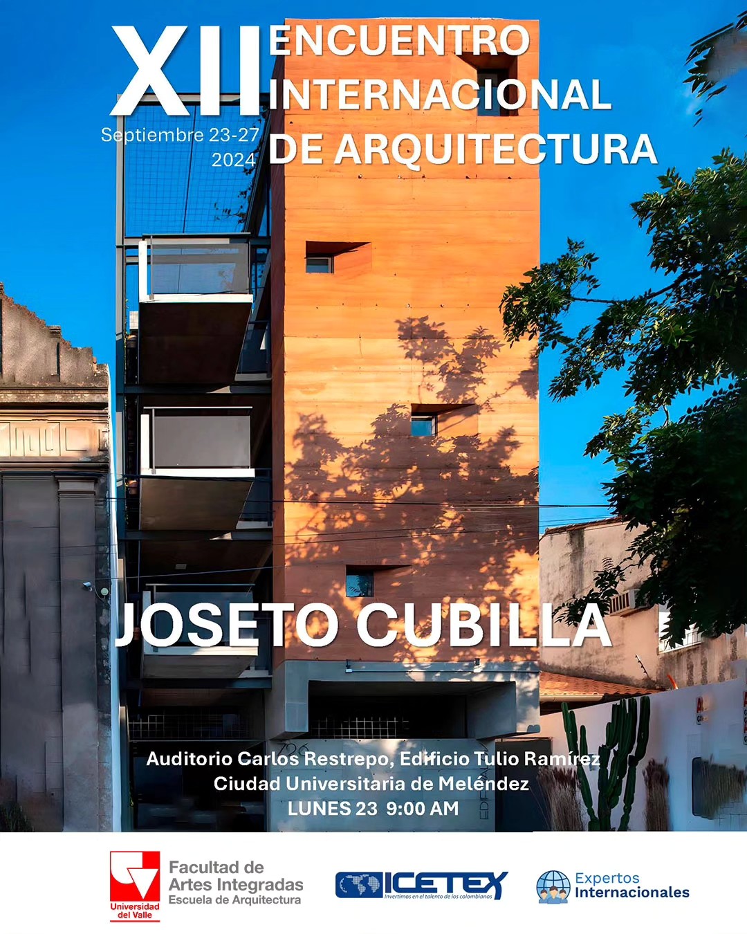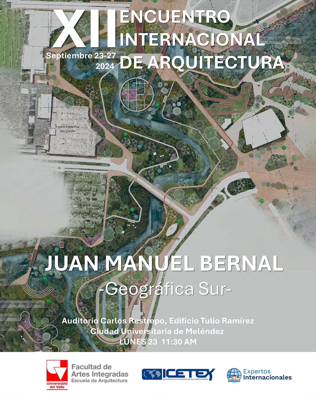 Del 23 al 27 de septiembre de 2024, la Universidad del Valle fue el epicentro del XII Encuentro Internacional de Arquitectura, un evento que cada año reúne a algunos de los más destacados pensadores y profesionales del campo de la arquitectura de toda América Latina para reflexionar sobre la labor y el papel de la arquitectura en la solución de problemas de la actualidad. Este año, el encuentro estuvo dedicado a explorar las temáticas de "Materia, Memoria y Paisaje", abordando cómo estos elementos esenciales influyen y configuran el espacio urbano y la arquitectura que lo habita. Este año los invitados fueron: