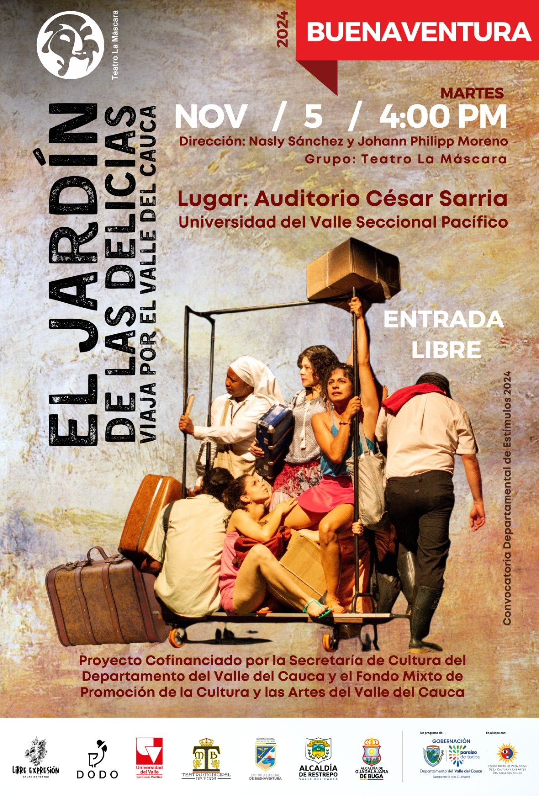 Nos complace invitar a toda la comunidad universitaria y al público de Buenaventura a la presentación especial de El Jardín de las Delicias, una poderosa obra de teatro escrita por Pilar Restrepo y dirigida por Nasly Sánchez y Johann Philipp Moreno, docente de la Universidad del Valle, seccional Pacífico. Este proyecto teatral, premiado por la Secretaría de Cultura del Valle del Cauca, aborda de manera profunda y sensible las realidades del conflicto armado colombiano, enfocándose en las experiencias de mujeres y niñas víctimas de violencia sexual. Esta presentación en Buenaventura será una oportunidad única para vivir un teatro comprometido y transformador.