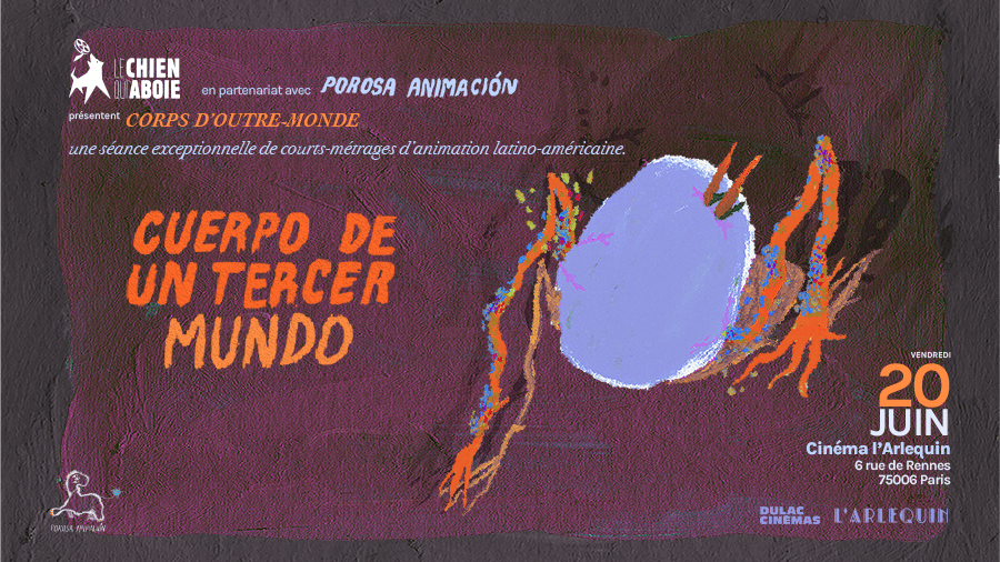 Cuerpos de un tercer mundo es una selección de cortometrajes latinoamericanos que busca desafiar y expandir los límites de la animación. Con Porosa Animación (un colectivo colombiano que reflexiona, difunde y crea animación), exploran el cuerpo en el cine del Sur. En este reflexionan con preguntas como ¿Cómo se ve este cuerpo-continente? ¿Qué dibuja nuestro cuerpo frente a los mares y ríos que nos separan de Europa? “Aquí, las películas flotan sobre nuestro territorio, se acercan al abismo de nuestras montañas, se infiltran en los fluidos a través de las heridas de nuestra memoria y fusionan las fronteras del cine y las artes.”