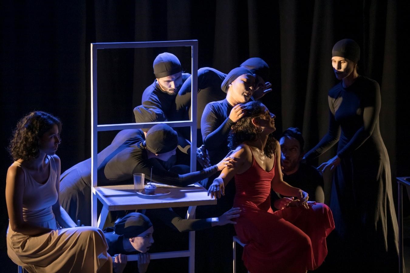 El elenco integra a dos actrices, un guitarrista y un coro de nueve voces (sopranos, contraltos, tenores y bajos), creando una atmósfera sonora que da forma a lo que no tiene nombre: la pena de la pérdida.