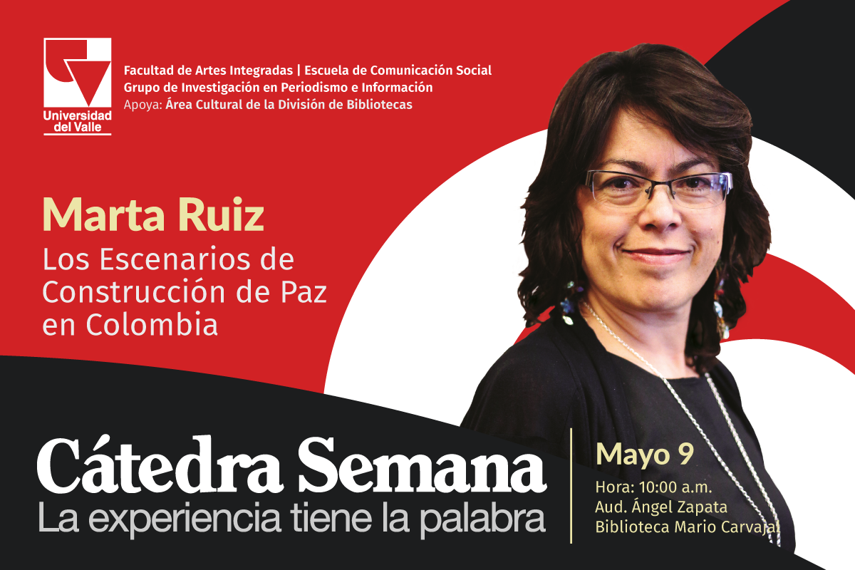 La conferencia será dictada por la asesora editorial y colaboradora de la Revista Semana, Marta Ruiz, este martes 9 de Mayo a las 10:00 a.m. en el Auditorio Ángel Zapata de la biblioteca Mario Carvajal del campus de Meléndez.