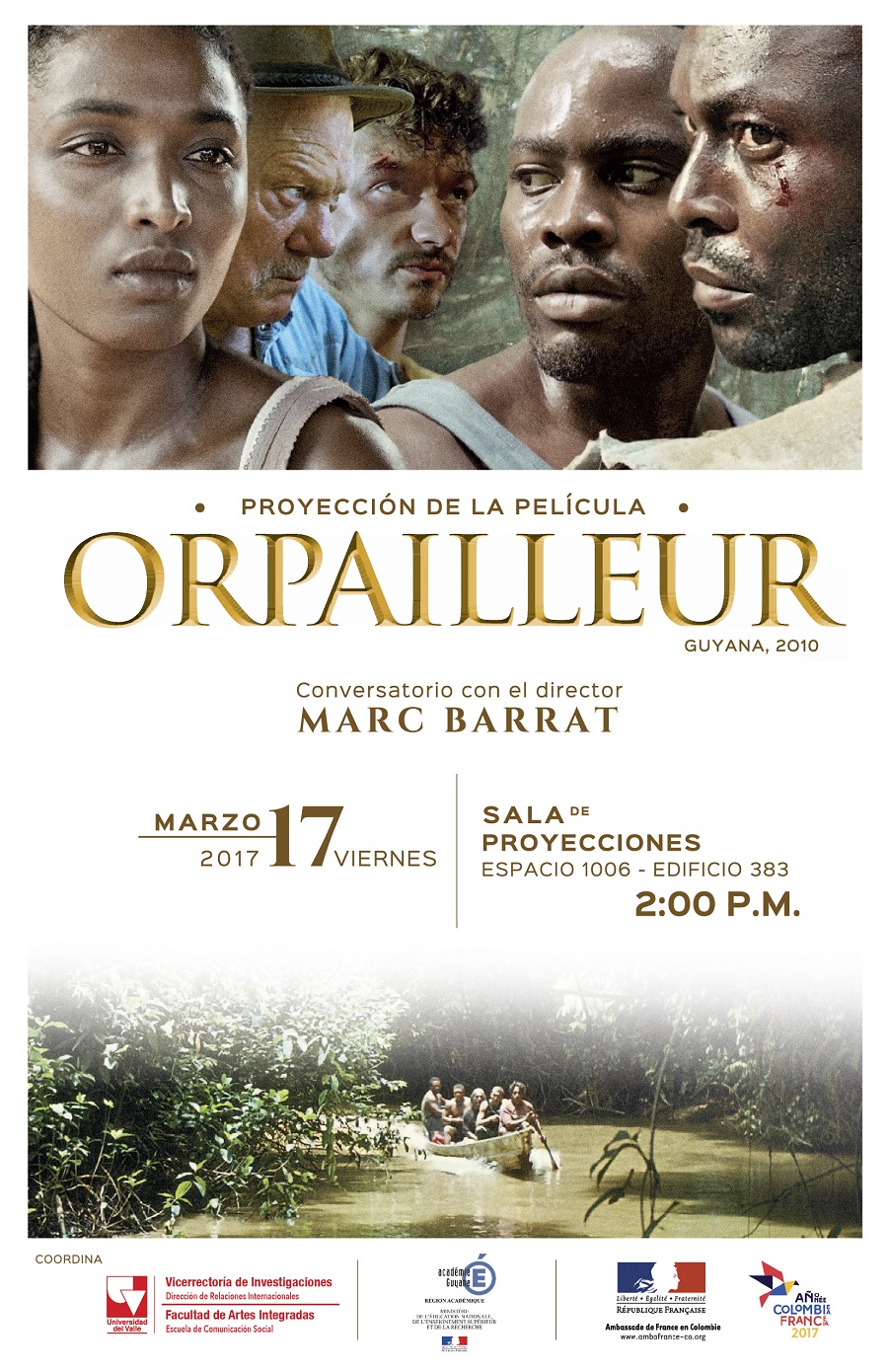 La Dirección de Relaciones Internacionales, la Escuela de Comunicación Social y la Cinemateca de la Universidad del Valle, invitan este viernes 17 de marzo a la proyección de la película ORPAILLEUR (El buscador de oro) y al conversatorio con su director, el guyanés Marc Barrat.