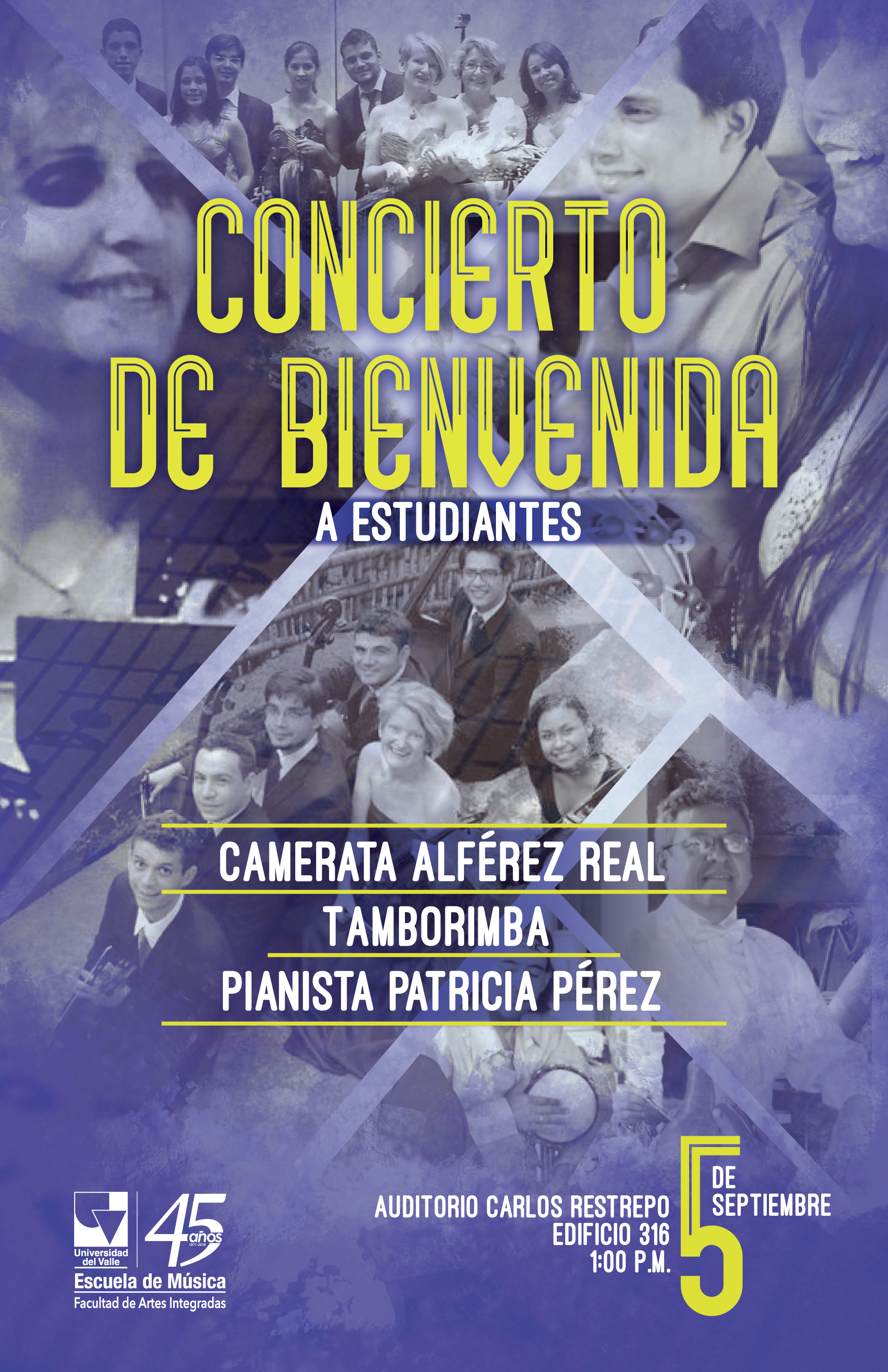 El lunes 5 de septiembre la Escuela de Música de la Universidad del Valle invita a estudiantes, funcionarios y docentes al primer concierto del semestre agosto-diciembre 2016.