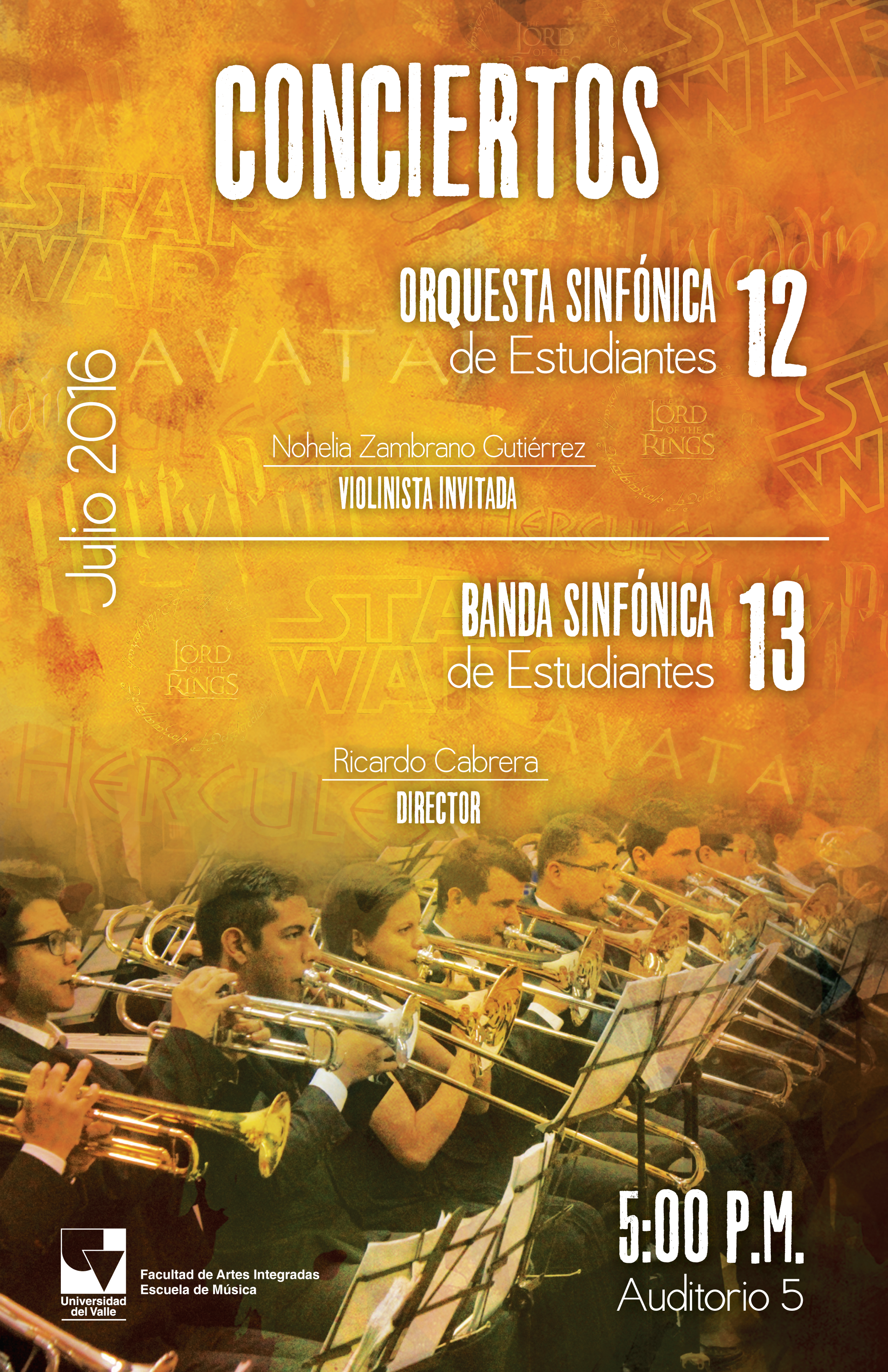El martes 12 y miércoles 13 de julio serán los conciertos de final de semestre de la Orquesta y de la Banda Sinfónica de Estudiantes de la Escuela de Música dirigidas por el profesor Ricardo Cabrera. 5:00 p.m. Auditorio 5. Entrada libre.