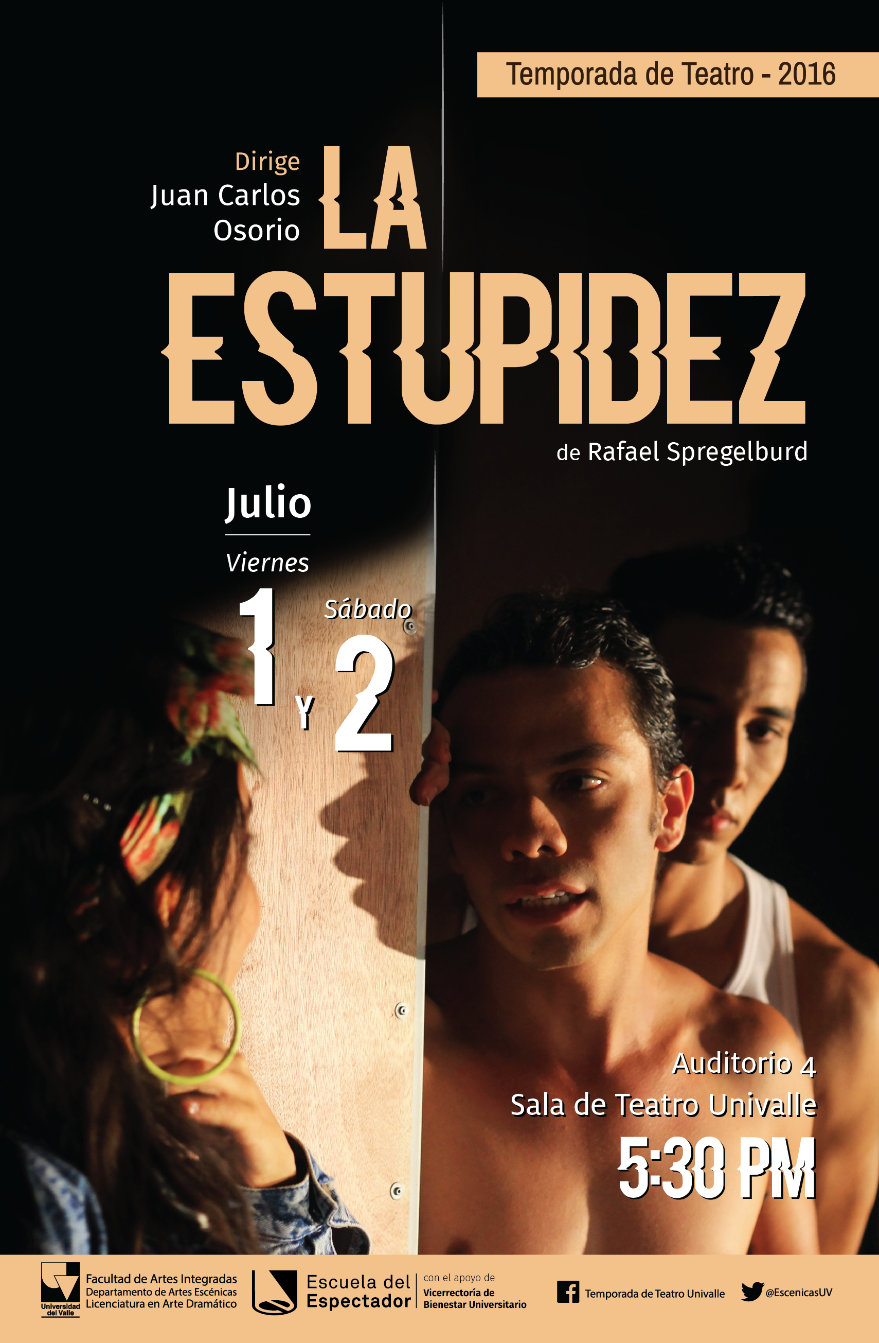 Lugar: Sala de Teatro Univalle (Auditorio 4) Ciudad Universitaria Meléndez.