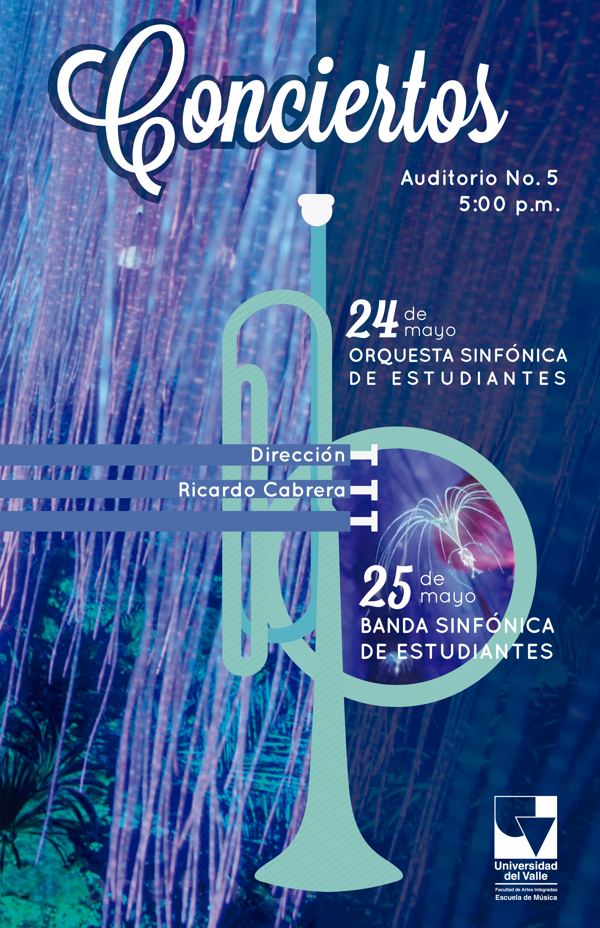 La Escuela de Música de la Facultad de Artes Integradas invita a los conciertos de la Orquesta y la Banda de Estudiantes que se realizarán el martes 24 y el miércoles 25 de mayo a las 5:00 p.m. en el auditorio 5.