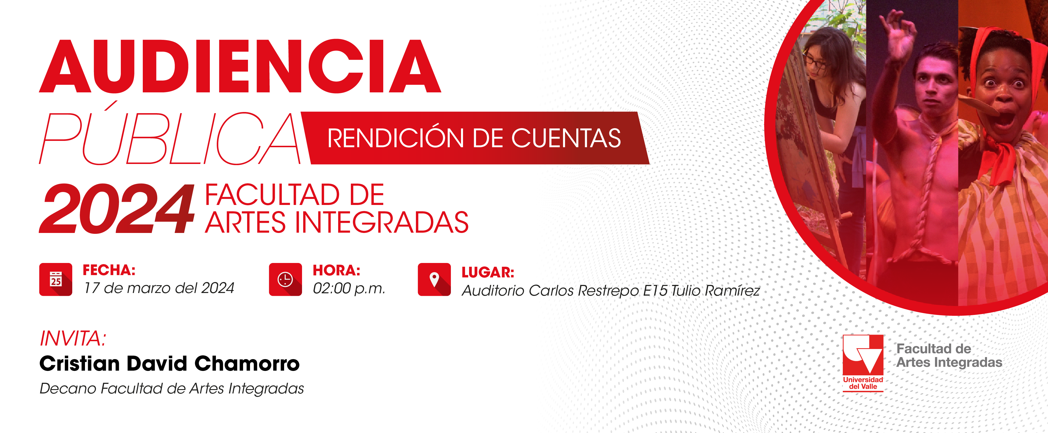 La Decanatura de la Facultad de Artes Integradas socializa a toda su comunidad al evento de Rendición Pública de Cuentas, vigencia 2024.